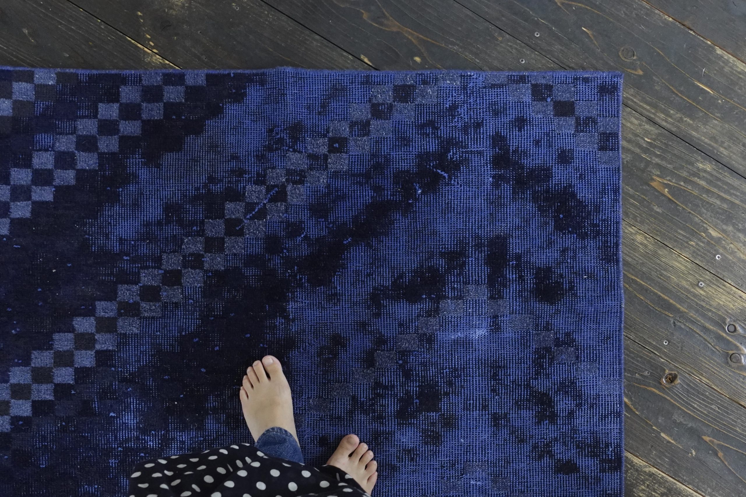 他のラグと比べると毛足が極端に短く網目も細かいのが特徴。