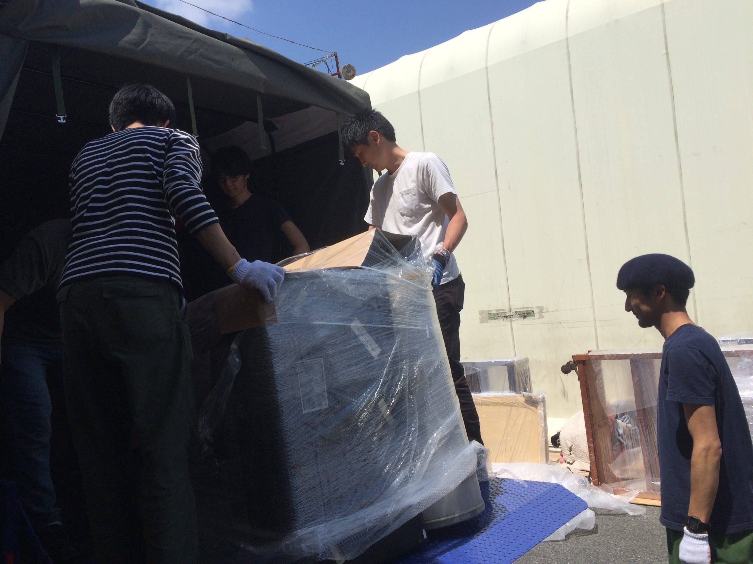 スタッフだけでは足りず友人達に助けてもらいトラックを何度も運